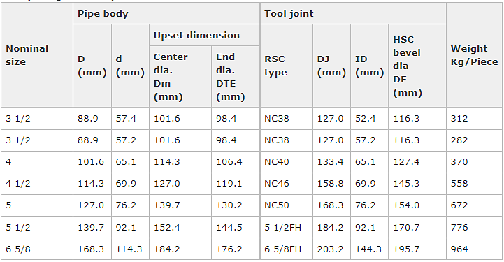 Heavy Weight Drill Pipe List